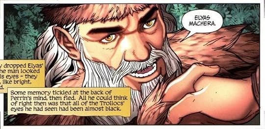 We also got to see Elyas in this volume! I really like Elyas' character, and his past is interesting to wonder about. Anyway, this is what Elyas looked like: His golden eyes are cool, and I look forward to seeing the goldening (shut up spellcheck, that's a word) of Perrin's in further volumes. We got a hint of it here, with his eyes a shade of lighter brown than his usual dark colouring (oooooooh I just had a thought about the TV show coming from Amazon and how cool golden eyes are going to look on Marcus Rutherford who's playing Perrin).