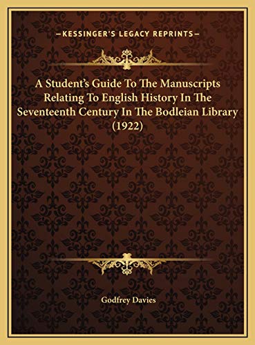 A Student's Guide To The Manuscripts Relating To English History In The Seventeenth Century In The Bodleian Library