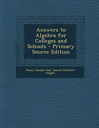 Answers to Algebra for Colleges and Schools - Primary Source Edition