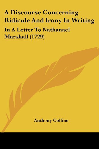 ""A Discourse Concerning Ridicule and Irony in In a Letter to Nathanael Marshall (1729)"" is a book written by Anthony Collins that focuses on the use of ridicule and irony in literary works. In this book, Collins argues that the use of these literary devices can be a powerful tool for writers to convey their messages and ideas effectively. He explores the different ways in which writers can use ridicule and irony to criticize and satirize society, politics, and religion. Collins also examines the potential risks and dangers of using these devices, such as offending readers or being misunderstood. The book is written in the form of a letter addressed to Nathanael Marshall, a friend of Collins. It is a thought-provoking and insightful work that offers valuable insights into the art of writing and the power of language.This scarce antiquarian book is a facsimile reprint of the old original and may contain some imperfections such as library marks and notations. Because we believe this work is culturally important, we have made it available as part of our commitment for protecting, preserving, and promoting the world's literature in affordable, high quality, modern editions, that are true to their original work.