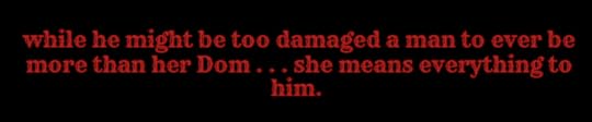 Gabriel is the perfect man yall. He is Kiersten Dom and the way he took care of her had me melting. He was so understanding of her and her needs. He was willing to patiently help her learn what she likes and doesn't. HE WAS SO RESPECTFUL. It's very easy to see and understand how and why they fell in love.