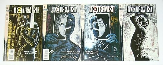 Originally published as a four-issue mini series. The miniseries took what we're supposed to see as superheroics to their most risqué. Murder, sex, amorality – anything is permissible with the suit on. THE EXTREMIST follows three ordinary people who succumb to the allure of a mask and a costume and all the power that comes with it, creating a shocking and controversial exploration of the nature of freedom and sexuality.