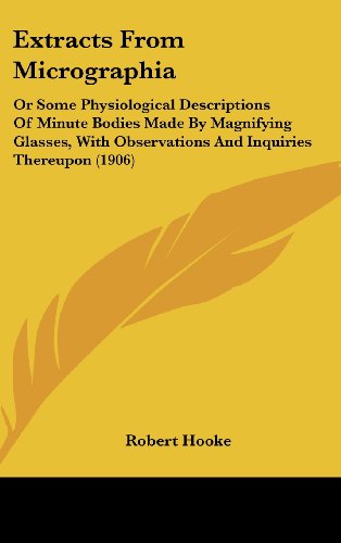 Extracts From Or Some Physiological Descriptions Of Minute Bodies Made By Magnifying Glasses, With Observations And Inquiries Thereupon (1906) is a book written by Robert Hooke. It is a collection of extracts from his original work, Micrographia, which was published in 1665. The book is a detailed and groundbreaking study of the microscopic world, and Hooke's observations and discoveries have had a profound impact on science and medicine.The book is divided into chapters, each of which focuses on a different area of study. Hooke covers a wide range of topics, including the structure of plants and animals, the properties of crystals, and the behavior of insects. He also describes the use of microscopes and other scientific instruments, and provides detailed illustrations of his observations.Throughout the book, Hooke demonstrates a keen eye for detail and a deep understanding of the natural world. He is able to make connections between seemingly disparate phenomena, and his observations often lead to new insights and discoveries. His work has been praised for its scientific rigor and its elegant prose, and it remains an important reference for scientists and scholars to this day.Overall, Extracts From Or Some Physiological Descriptions Of Minute Bodies Made By Magnifying Glasses, With Observations And Inquiries Thereupon (1906) is a fascinating and influential work of science and literature. It provides a window into the mind of one of the greatest scientific minds of the 17th century, and it continues to inspire and inform scientists and scholars today.This scarce antiquarian book is a facsimile reprint of the old original and may contain some imperfections such as library marks and notations. Because we believe this work is culturally important, we have made it available as part of our commitment for protecting, preserving, and promoting the world's literature in affordable, high quality, modern editions, that are true to their original work.