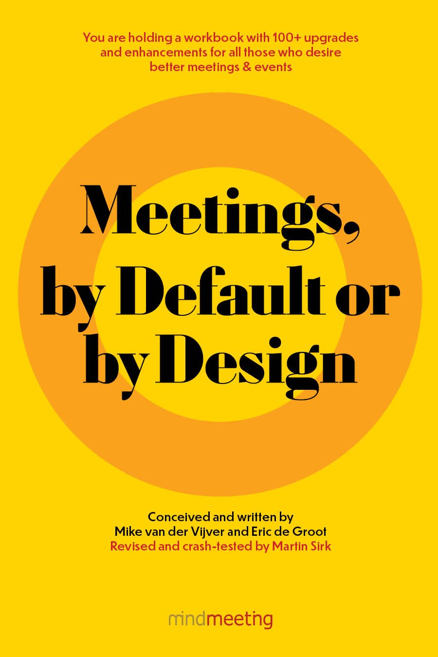 Meetings, by Default or by Designis a workbook with 100+ upgrades and enhancements for all those who desire better meetings & events. It describes 40 different default meeting practices in 40 chapters and analyses the potential for improvement for each of them. It does so in 4 areas of possible improvement.