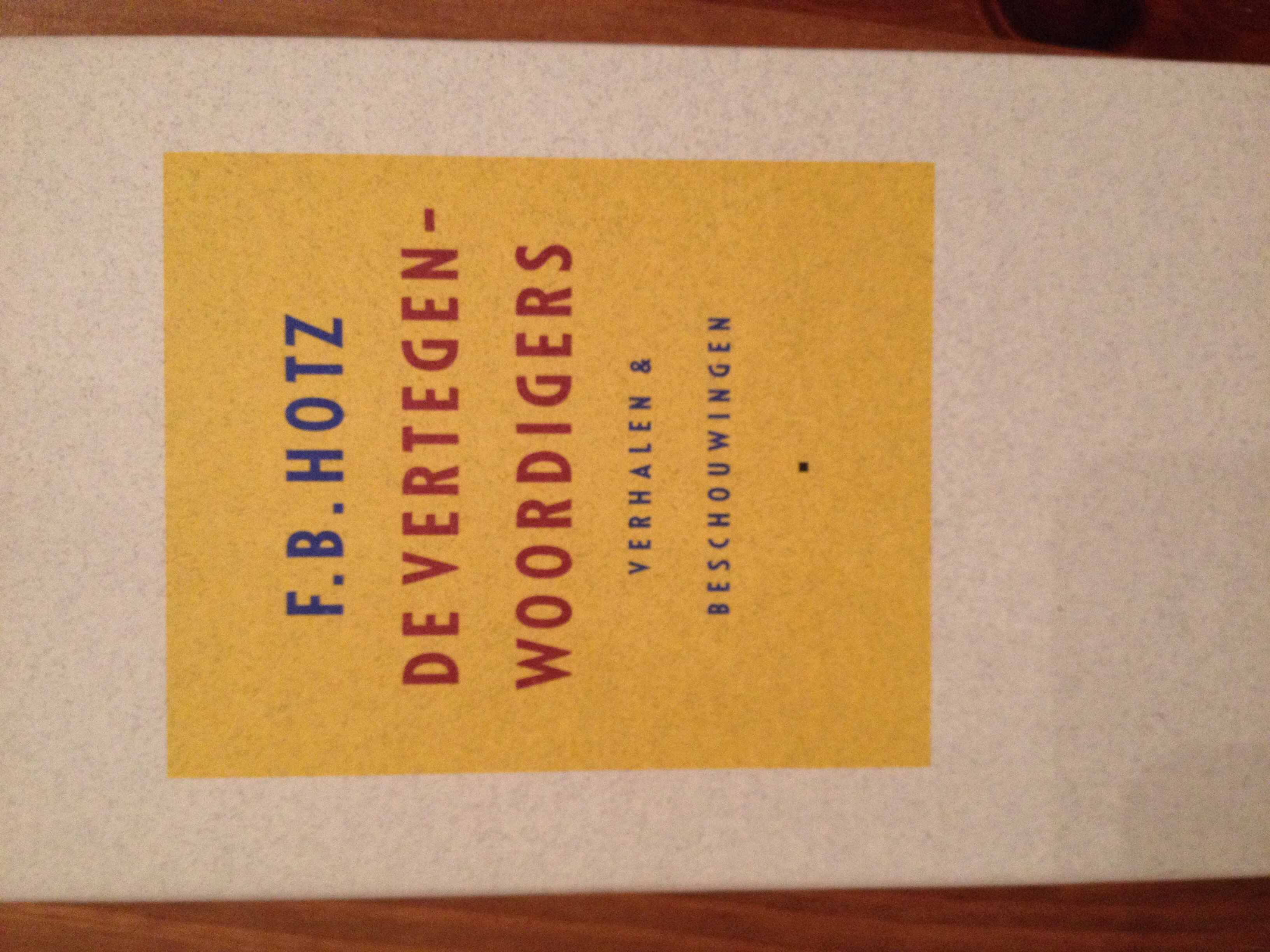 Naast het geweldige autobiografische verhaal 'De vertegenwoordigers', bevat deze bundel onder andere een interessante beschouwing over de roman 'Tobias en de dood' van J. van Oudshoorn. Hotz verwoordt hierin wat hij verstaat onder goed schrijverschap: "Wat een schrijver tot schrijver maakt is de kwaliteit van zijn verwoording, en niets anders. Niets. Niet het gegeven, de strekking of de invalshoek maakt het meedelen tot schrijven; het zijn de gekozen woorden, hun rangschikking, en het vervangen van ongewone woorden door gewone. Er is een soort magie die aan een gewoon woord in een kalme zin wurgkracht kan geven." Een rake observatie. Want als je allerlei boeken opslaat over hetzelfde thema (bijvoorbeeld oorlog), met dezelfde strekking (oorlog brengt bepaalde eigenschappen in mensen naar boven) en invalshoek (volwassene kijkt terug op de oorlog, die hij/zij als kind/jongere beleefde), constateer je inderdaad dat ze niet allemaal even goed zijn en dat dit voor een groot deel wordt bepaald door de 'verwoording'.