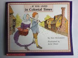 I just finished reading the book If You Lived In Colonial Times by Ann McGovern like if you lived in one of the New England colonies during the years between 1565 and 1776. this book is in a great question and answer format it helps you to understand what more specific aspects of these times were and how they lived thought all the hard ships of creating a town/home that was safe and had a bounty of resources necessary to live during the colonial times. I enjoyed reading this book and learning more about how many troubles these people had to go through just to go through there everyday life.