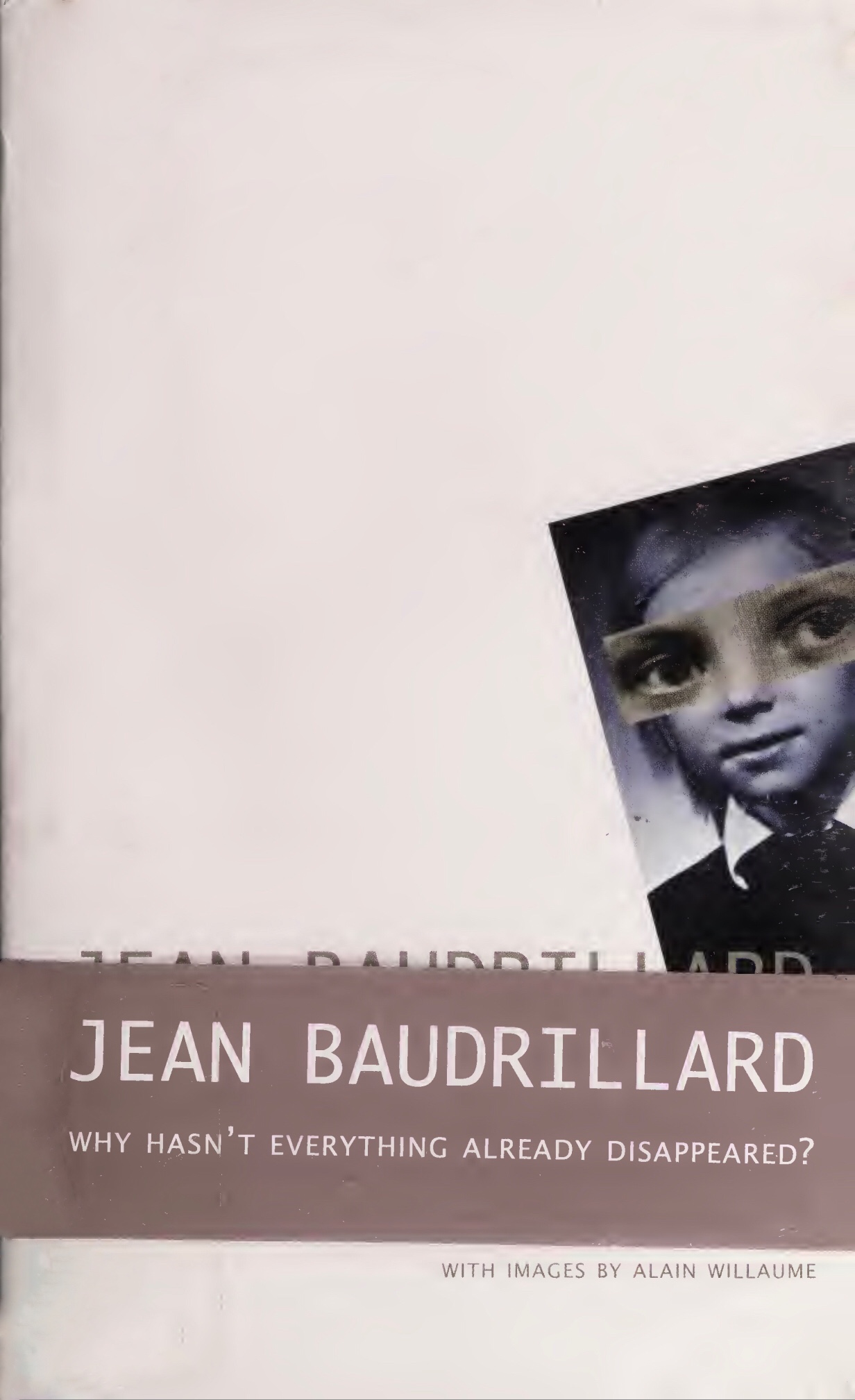 “Behind every image, something has disappeared. And that is the source of its fascination,” writes French theorist Jean Baudrillard in Why Hasn’t Everything Already Disappeared? In this, one of the last texts written before his death in March 2007, Baudrillard meditates poignantly on the question of disappearance. Throughout, he weaves an intricate set of variations on his theme, ranging from the potential disappearance of humanity as a result of the fulfillment of its goal of world mastery to the vanishing of reality due to the continual transmutation of the real into the virtual. Along the way, he takes in the more conventional question of the philosophical “subject,” whose disappearance has, in his view, been caused by a “pulverization of consciousness into all the interstices of reality.”