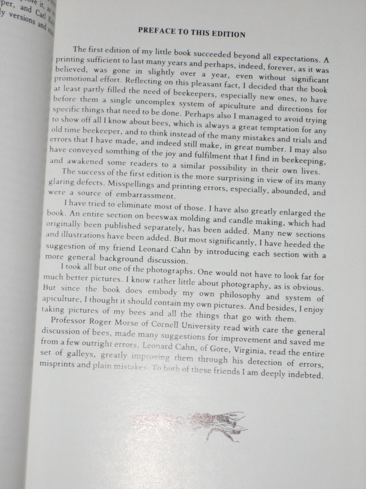 Plus, it is out of print, and the copyright holder I have heard has given up on updating the material and getting it republished. It is indeed a straight forward book and should be part of any serious beekeepers library. If you have Bee Fever, it is a must-have.