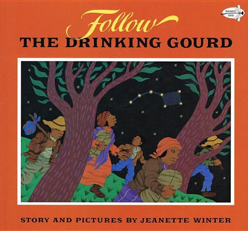 Illus. in full color. "Winter's story begins with a peg-leg sailor who aids slaves on their escape on the Underground Railroad. While working for plantation owners, Peg Leg Joe teaches the slaves a song about the drinking gourd (the Big Dipper). A couple, their son, and two others make their escape by following the song's directions. Rich paintings interpret the strong story in a clean, primitive style enhanced by bold colors. The rhythmic compositions have an energetic presence that's compelling. A fine rendering of history in picturebook format."--(starred) Booklist.