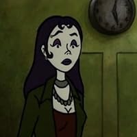 After a short study of graphical design at the Santa Monica College of Art in California, Lise Myhre started her career as an artist, earning money illustrating CD covers and t-shirts. She also participated in cartoon competitions and started giving contributions to Larsons Gale Verden, the Norwegian version of Gary Larson's magazine The Far Side ("M.P." in 1996).