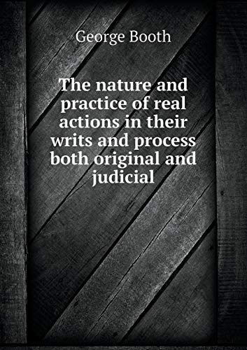 The nature and practice of real actions in their writs and process both original and judicial This book, "The nature and practice of real actions in their writs and process both original and judicial", by George Booth, is a replication of a book originally published before 1808. It has been restored by human beings, page by page, so that you may enjoy it in a form as close to the original as possible.
