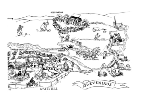 We're told that Swevenings, the village name, means dream and the river's name Chyme, means yawn. Which I think is a hint that the map is a dream of England.