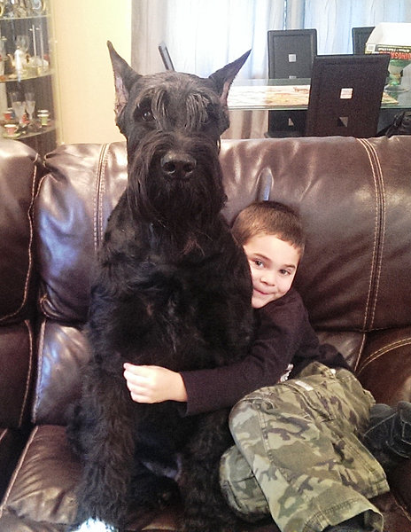 (Asta, aside from being female, is a Schnauzer. She's probably a standard Schnauzer (w/handler for scale), but I have somewhat wistfully cast cast as a giant Schnauzer (w/kid for scale) (and here again w/Great Dane for scale), to give some real emphasis to Nick's repeated line, "Asta jumped up and punched me in the belly with her front feet." The wire haired fox terrier (w/kid for scale) who played Asta in the movies is cute as a button, but he isn't Asta.)