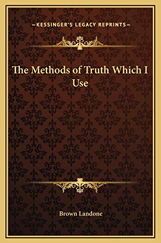 ""The Methods of Truth Which I Use"" is a book written by Landone Brown that delves into various techniques and practices for discovering and living in truth. The author offers insights and guidance on how to develop an intuitive sense of truth, how to use meditation and visualization to access higher wisdom, and how to cultivate a mindset of positivity and self-belief. The book also explores the power of affirmations, the importance of self-awareness, and the role of personal responsibility in creating a fulfilling and authentic life. Overall, ""The Methods of Truth Which I Use"" is a practical and inspiring guide for anyone seeking to live a life of truth, purpose, and abundance.1928. The author gives the reader 31 methods, one for each day of the month to sustain them hour by hour, help dispel mental fog, to grow in spirit and power, and learn how to express desires freely without limitation. It is recommended that each lesson be used in order, i.e. Lesson One should be studied on the first day of the month, etc., but if for some reason you need the help of a particular lesson, turn to it for the help it can provide. Also, for each lesson, the author has prepared a prescription made up completely from passages of God's word to help in the reader's work. See other titles by this author available from Kessinger Publishing.This scarce antiquarian book is a facsimile reprint of the old original and may contain some imperfections such as library marks and notations. Because we believe this work is culturally important, we have made it available as part of our commitment for protecting, preserving, and promoting the world's literature in affordable, high quality, modern editions, that are true to their original work.