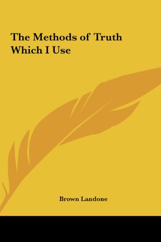 ""The Methods of Truth Which I Use"" is a self-help book by the authors Landone and Brown that provides readers with practical techniques for achieving their goals and living a fulfilling life. The book is divided into several chapters, each of which focuses on a different aspect of personal development. The authors draw on their own experiences and observations to offer insights into the human psyche and the ways in which we can overcome our limitations and achieve our full potential. Some of the topics covered in the book include the power of positive thinking, the importance of setting goals, and the role of visualization in achieving success. The authors also provide practical exercises and techniques for readers to apply in their own lives, making this book a valuable resource for anyone looking to improve themselves and achieve their goals. Overall, ""The Methods of Truth Which I Use"" is an inspiring and insightful guide to personal growth and self-improvement.1928. The author gives the reader 31 methods, one for each day of the month to sustain them hour by hour, help dispel mental fog, to grow in spirit and power, and learn how to express desires freely without limitation. It is recommended that each lesson be used in order, i.e. Lesson One should be studied on the first day of the month, etc., but if for some reason you need the help of a particular lesson, turn to it for the help it can provide. Also, for each lesson, the author has prepared a prescription made up completely from passages of God's word to help in the reader's work. See other titles by this author available from Kessinger Publishing.This scarce antiquarian book is a facsimile reprint of the old original and may contain some imperfections such as library marks and notations. Because we believe this work is culturally important, we have made it available as part of our commitment for protecting, preserving, and promoting the world's literature in affordable, high quality, modern editions, that are true to their original work.