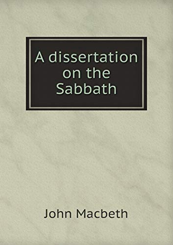 A dissertation on the Sabbath in which the nature of the institution, and the obligations to its observance, are stated and illustrated This book, "A dissertation on the Sabbath", by John Macbeth, is a replication of a book originally published before 1822. It has been restored by human beings, page by page, so that you may enjoy it in a form as close to the original as possible.