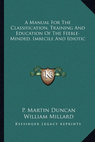 A Manual For The Classification, Training And Education Of The Feeble-Minded, Imbecile And Idiotic is a comprehensive guide written by P. Martin Duncan. The book is a detailed examination of the classification, training, and education of individuals who are considered to be feeble-minded, imbecile, or idiotic. The author provides a thorough analysis of the different types of mental retardation and offers practical advice on how to identify and classify individuals who suffer from these conditions.The book also provides detailed information on the various training and educational methods that can be used to help individuals with mental retardation. The author emphasizes the importance of early intervention and offers practical suggestions on how to provide appropriate care and support to individuals with mental retardation.In addition, the book includes a detailed discussion of the legal and ethical issues surrounding the care and treatment of individuals with mental retardation. The author highlights the need for compassion, understanding, and respect for individuals with mental retardation and encourages readers to adopt a humanistic approach to their care and treatment.Overall, A Manual For The Classification, Training And Education Of The Feeble-Minded, Imbecile And Idiotic is an essential resource for anyone involved in the care and treatment of individuals with mental retardation. The book offers practical advice, insightful analysis, and a compassionate perspective on this important topic.This scarce antiquarian book is a facsimile reprint of the old original and may contain some imperfections such as library marks and notations. Because we believe this work is culturally important, we have made it available as part of our commitment for protecting, preserving, and promoting the world's literature in affordable, high quality, modern editions, that are true to their original work.