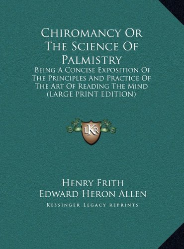 ""Chiromancy Or The Science Of Being A Concise Exposition Of The Principles And Practice Of The Art Of Reading The Mind"" is a book written by Henry Frith. This particular edition is a large print edition, making it easier for readers with visual impairments to read. The book is focused on the practice of palmistry, also known as chiromancy, which is the art of reading the lines on a person's hand to gain insight into their character, personality, and future. Frith provides a concise exposition of the principles and practice of this art, offering readers a comprehensive understanding of the techniques and methods used to interpret the various lines and markings on the hand. The book is intended for anyone interested in the art of palmistry, whether they are beginners or experienced practitioners. It is written in clear and accessible language, making it easy to follow and understand, and is an essential resource for anyone looking to explore the fascinating world of chiromancy.(LARGE PRINT EDITION) By Which The Past, The Present, And The Future May Be Explained And Foretold.This scarce antiquarian book is a facsimile reprint of the old original and may contain some imperfections such as library marks and notations. Because we believe this work is culturally important, we have made it available as part of our commitment for protecting, preserving, and promoting the world's literature in affordable, high quality, modern editions, that are true to their original work.