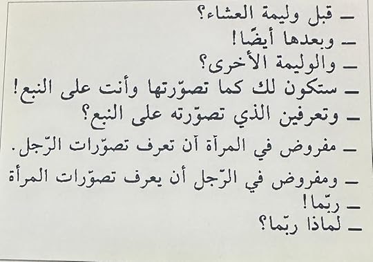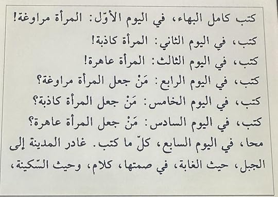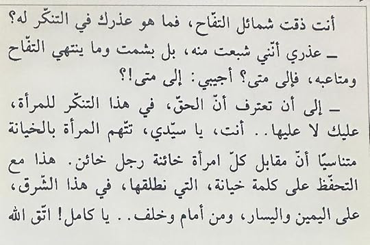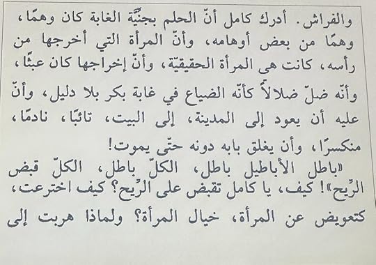 يبدو أنه خاب طنّي قليلاً ..وجدت الكتاب غير مفهوم و غير واضح في كثير من المقاطع ،لكن تبدو لي سرداً خيالياً عن تجربة تشرح نفس الرجل و شهواته،و عن نظرته للمرأة و تغيرها و تحركها . ربما رتابة المكان الذي فيه سارت القصة من الألف إلى الياء ،أي الغابة. يجعلك تُبقي خيالك ساكناً في نفس المحطة لا تبرحها ,ولا تتحرك مشاعرك بالتالي بالقوة المطلوبة منها . تتسلل بين الحوارات التي وجدتُها مركبة تركيباً غير مفهوم في بعض الأحيان ، مقاطع من فلسفة المينا هذه تجعل القلب يخفق عنوة ، كوصفه الوحدة و الندم ! كذلك أعجبني في النهاية عندما أنصف النساء اللاتي وردن في سرده ،كأنه يريد من المجتمع كلّه أن يقف معه و يترك عنه كل الاتهامات الباطلة لها و الذكورية التي كبلته طويلاً