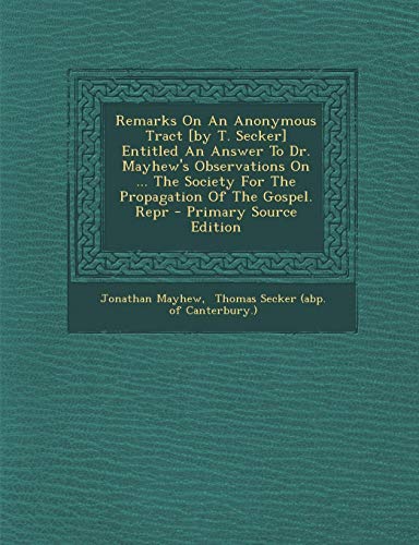 Remarks On An Anonymous Tract [by T. Secker] Entitled An Answer To Dr. Mayhew's Observations On ... The Society For The Propagation Of The Gospel. Repr