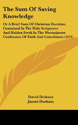 The Sum of Saving Knowledge is a book written by David Dickson in 1871. It is a brief summary of Christian doctrine as contained in the Holy Scriptures and presented in the Westminster Confession of Faith and Catechisms. The book is intended to provide a comprehensive overview of Christian theology for those seeking to deepen their understanding of the faith. It covers a wide range of topics, including the nature of God, the Trinity, the person and work of Jesus Christ, the Holy Spirit, sin, salvation, the church, and the sacraments. The book is written in a clear and concise style, making it accessible to readers of all levels of theological knowledge. It is an excellent resource for anyone seeking to better understand the foundations of the Christian faith.Together With The Practical Use Thereof.This scarce antiquarian book is a facsimile reprint of the old original and may contain some imperfections such as library marks and notations. Because we believe this work is culturally important, we have made it available as part of our commitment for protecting, preserving, and promoting the world's literature in affordable, high quality, modern editions, that are true to their original work.