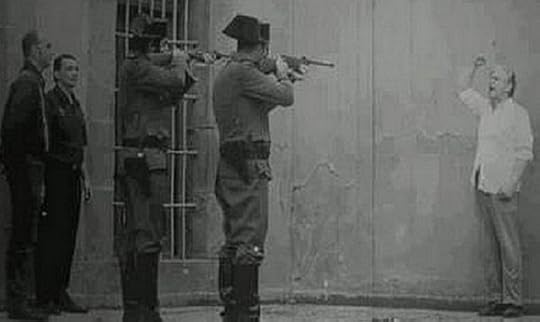 لوركا هو شاعر اسباني من مدينة غرناطة كان يستمد شعره من الأغاني الغجرية والموشحات الأندلسية وقد اعتقله جنود الجنرال فرانكو واطلقوا عليه الرصاص بزعم ان اشعاره اخطر من الأسلحة ..ويظهر في الصورة وهو بمنتهي الثبات ينشد آخر أشعاره لحظة اطلاق النار عليه