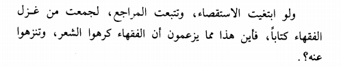 أفهم حقيقة أن يكون من الفقهاء شعراء يتغزلون بالنساء بشكل عفيف، وأعلم أني ربما فهمت بعض الأبيات بشكل خاطئ وحكمت عليها بأنها غير لائقة، ولكن هناك شيء يضايقني، ولا أستطيع استيعابه، وهو : لماذا ذكر الطنطاوي أبيات ابن خلكان تلك ؟