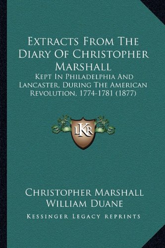 Extracts From The Diary Of Christopher Marshall is a historical book that contains the personal diary entries of Christopher Marshall during the American Revolution from 1774 to 1781. The book is a compilation of selected entries from Marshall's diary that were kept in Philadelphia and Lancaster during this period. The diary entries provide a unique perspective on the events that took place during the American Revolution, including the battles, political developments, and the daily life of the people during this time. The book provides insight into the thoughts and feelings of an ordinary citizen during this tumultuous period in American history. The author, Christopher Marshall, was a prominent citizen of Philadelphia and a member of the Society of Friends. His diary entries provide a glimpse into the life of a Quaker during the American Revolution. The book is an important historical document that sheds light on the personal experiences of the people who lived through this critical period in American history.This scarce antiquarian book is a facsimile reprint of the old original and may contain some imperfections such as library marks and notations. Because we believe this work is culturally important, we have made it available as part of our commitment for protecting, preserving, and promoting the world's literature in affordable, high quality, modern editions, that are true to their original work.