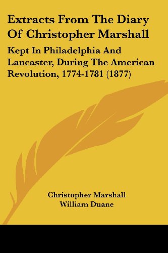 ""Extracts From The Diary Of Christopher Marshall"" is a historical book that features the personal diary of Christopher Marshall during the American Revolution from 1774 to 1781. The author, Christopher Marshall, was a prominent merchant and resident of Philadelphia and Lancaster during this period. The book provides a firsthand account of the events that took place during the American Revolution, including the battles of Brandywine, Germantown, and Monmouth, as well as the British occupation of Philadelphia. The diary also sheds light on the daily life of the people during the war, including their struggles, fears, and hopes. This book is an essential read for anyone interested in the American Revolution and the personal experiences of people who lived through it.""This scarce antiquarian book is a facsimile reprint of the old original and may contain some imperfections such as library marks and notations. Because we believe this work is culturally important, we have made it available as part of our commitment for protecting, preserving, and promoting the world's literature in affordable, high quality, modern editions, that are true to their original work.