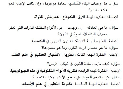 يتناول الكتاب مجموعه من الافكار العلميه الاساسيه التي فسرت مجموعه من الظواهر النموذج الفيزيائي للذره القانون الدوري في الكمياء نظرية الانفجار العظيم في علم الفلك نظرية الالواح التكتونيه في علم الجيولوجيا نظرية التطور في علم الاحياء وتطبيقات كثيره قائمه على هذه الافكار تناولها الكتاب باسلوب مبسط بعيد عن التعقيد استمتعت بكميه المعلومات التي يحتويها الكتاب