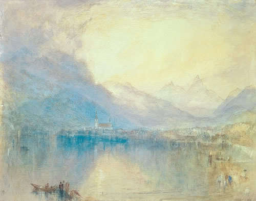 Turner stretched the paper onboard and after plunging them into water, he dropped the colours onto the paper while it was wet, making marblings and gradations throughout the work.