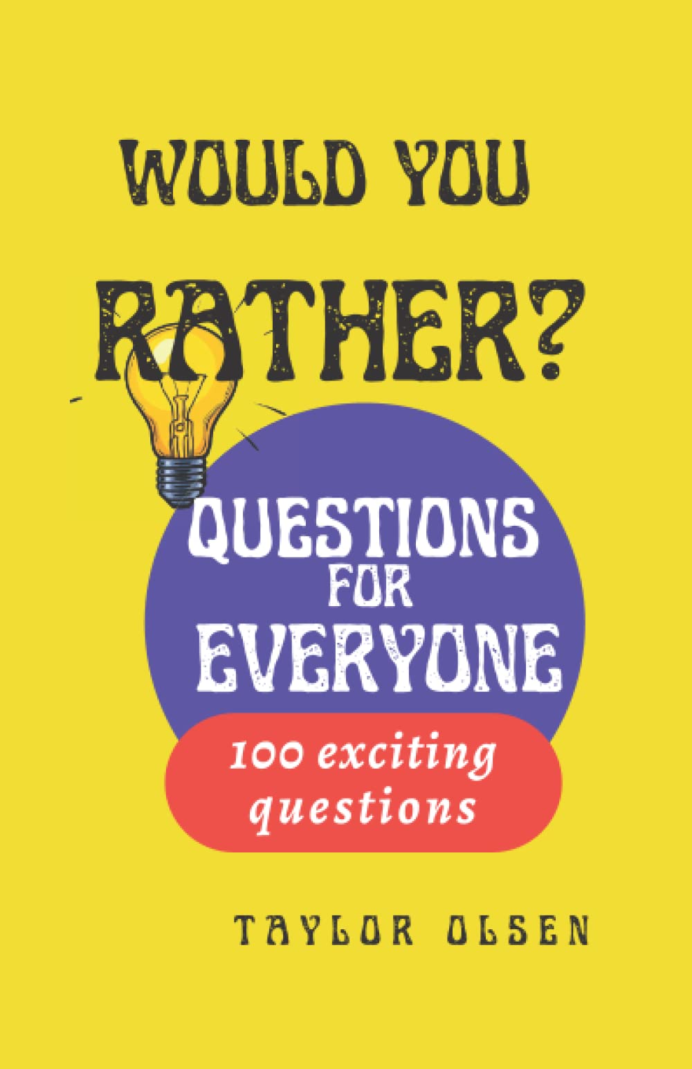Enjoy This WOULD YOU RATHER QUESTIONS? FOR EVERYONE with your partner. This gamebook is very funny, hilarious, silly and has challenging questions. Would you rather let people read your thoughts or view your search history on the internet? As you explore exciting questions like this one, ditch the same-old, dull couples' activities and uncover what makes your mate tick. These WOULD YOU RATHER QUESTIONS? FOR EVERYONE will keep the conversation going, make you laugh hysterically, and improve your friendship, whether you're picking between two equally dubious options or debating which ridiculous scenario you'd rather be stuck in. ★THINGS YOU WILL FIND INSIDE ★ ♥ Questions range from mundane decisions and embarrassing experiences to outrageous adventures involving celebrities, time travel, and the supernatural. There is something for everyone here. ♥You'll have enough of fodder for entertaining arguments anytime, anywhere with over 100 questions. You'll be astonished at how much you learn about each other's viewpoints, priorities, and thoughts. ♥ Do you want to compete? Then Make WOULD YOU RATHER QUESTIONS? FOR EVERYONE a game for two, complete with stakes, points, and prizes, by following our guidelines. · ♥ WOULD YOU RATHER QUESTIONS? FOR EVERYONE can help you develop a stronger bond with your partner, making it an ideal Valentine's Day or anniversary gift or date-night companion.