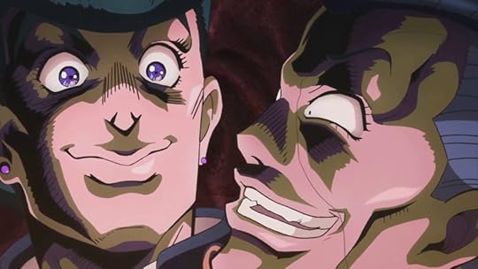 ¡Paciencia, mis queridos Jojos! Sé que los abandoné a mitad del tomo pero en breve los retomo. UPDATE: Finito, ahora sí. La verdad que lo promedio con tres por la misma razón por la que lo he hecho con tomos parecidos: está muy bueno, pero palidece frente a otros tomos. Cómo sigue el asunto de la chica fantasma me parece genial, aunque no le hayan dado ningún cierre todavía. Pero la historia de Shigeshi, que ocupa la mayor parte del tomo, se me termió haciendo larga, pese a que la idea en sí está buena y a que Shigechi seguramente se termine haciendo querer. Por lo que veo, en el tomo que viene aparece el Big Bad de la Parte 4, así que espero no colgarla ooooootra vez.