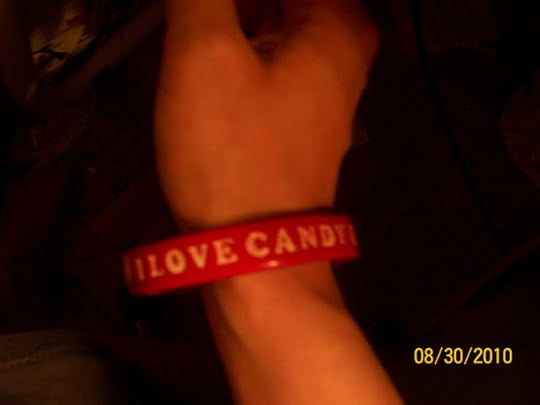 (it is harder than it looks to take a picture of a bracelet you are wearing that has writing on it that might get flash-shiny due to its luxe plastic coating)