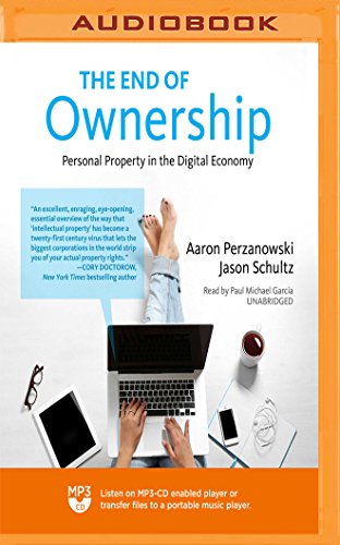 This is a very important book, although as a book by two law professors there is focus on exhausting the mountainous, minute details of the subject. The book serves as a signpost alerting us to the fact that our economy (the digital economy, and soon enough the tangible economy) is fast transforming into a renter state, since the things we purchase have unreadable end-of-term agreements specifying that we don't own them perpetually and for all purposes. Instead of ownership, what digital purchases provide to consumers are licenses, for temporary streaming, that expire over a certain amount of time, vanish upon the whim or failure of the commercial server, and over which the consumer has no right to share, lend, resell, or copy. This is a big transformation because if this concept transfers over to tangible property, then consumers lose to copyright holders, in the sense that we would no longer 'own' our clothes, our appliances, our hardware, and instead we would only be 'borrowing' them from the suppliers, despite the fact that the consumer would be paying full price for the privilege.