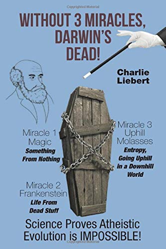 Without 3 Miracles, Darwin’s DEAD! In this simple, non-technical source that Christians can use in their battle for men’s souls presents irrefutable evidence showing Atheistic Evolution is impossible. Evolution’s greatest failures are the violation of three scientific laws, the 1st and 2nd Laws of Thermodynamics and the Law of Biogenesis. I call these three Magic, Frankenstein, and Uphill We’ve all seen the magician pull the rabbit out of the “empty” hat. That’s an illustration of the violation of the 1st Law, something coming out of nothing. With the hat or the Universe, it's either impossible or an illusion but, in any case, it's not REAL. Failure In Mary Shelley’s novel, Dr. Frankenstein takes parts of dead men, assembles the parts and produces a living man. It's a great story but we all know it's fiction, yet Evolution would have us believe it happened. Failure TWOUphill The 2nd Law establishes the Universe is irreversibly running down after being “wound up” at the beginning. Evolution is the opposite of this process. It advances to more complexity, more diversity and new "higher" life forms. Molasses don’t flow uphill and neither can Evolution. Other arguments missing-missing links, biological complex creatures, Evolution frauds, and complex “natural” processes. Richard Dawkins said. "Evolution has been observed. It's just that it hasn't been observed when it's happening.”Chapters 5-6 analyze WHY Non-Christians MUST cling to believing in Evolution, Finally we’ll look at terrible costs it has on our culture. Truly Science proves Evolution’s IMPOSSIBLE!Without 3 Miracles, Darwin’s DEAD! Foreword, Preface & IntroductionChapter 1 Science and KnowingChapter 2 EvolutionThe Appearance of Matter From NothingAbiogenesis - Dead Chemicals Become Living OrganismsIncreased Information in Genetic Systems Chapter 3 Evolution’s Three Impossible MiraclesChapter 4 the Improbable Cliff!Chapter 5 The Irrationality of UnbeliefChapter 6 What’s an Atheist To Do?Chapter 7 Cultural Impacts of EvolutionConclusionAppendix 1 About the Author - Charlie LiebertAppendix 2 Charlie Liebert’s Testimony