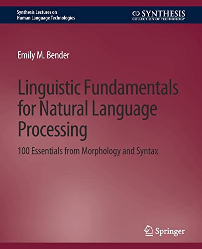 Many NLP tasks have at their core a subtask of extracting the dependencies―who did what to whom―from natural language sentences. This task can be understood as the inverse of the problem solved in different ways by diverse human languages, namely, how to indicate the relationship between different parts of a sentence. Understanding how languages solve the problem can be extremely useful in both feature design and error analysis in the application of machine learning to NLP. Likewise, understanding cross-linguistic variation can be important for the design of MT systems and other multilingual applications. The purpose of this book is to present in a succinct and accessible fashion information about the morphological and syntactic structure of human languages that can be useful in creating more linguistically sophisticated, more language-independent, and thus more successful NLP systems. Table of Acknowledgments / Introduction/motivation / Introduction / Morphophonology / Morphosyntax / Introduction / Parts of speech / Heads, arguments, and adjuncts / Argument types and grammatical functions / Mismatches between syntactic position and semantic roles / Resources / Bibliography / Author's Biography / General Index / Index of Languages