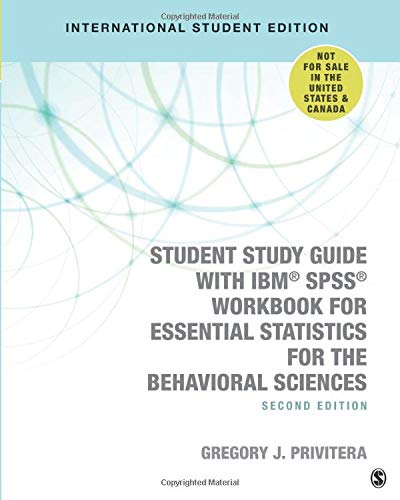 The Student Study Guide With IBM(R) SPSS(R) Workbook for the award-winning Research Methods for the Behavioral Sciences, Second Edition by Gregory J. Privitera includes a review of chapter learning objectives, chapter outlines and key terms, essential statistical formulas, special tips and insights for students, and chapter summaries. To help students practice their skills, the guide offers additional exercises, extensive practice quizzes linked to chapter learning objectives and SPSS in Focus exercises which complement those in the main text.