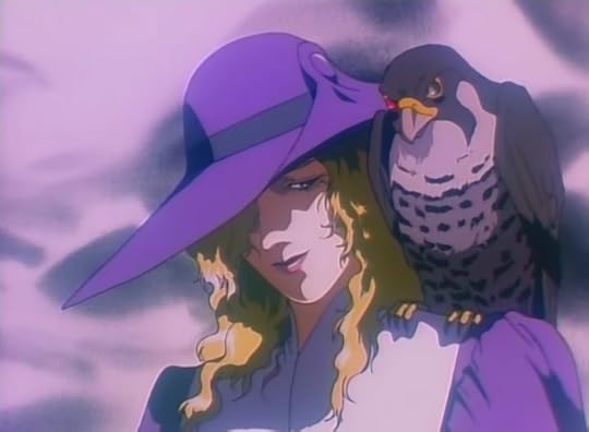 While this has most of Kikuchi's plot and character tropes what this bizarrely doesn't have are the freaky sex scenes and constant nudity - there's a tiny bit of topless torture at the beginning, but seriously for Kikuchi this is MILD - It's weird too - the woman gets a model factory music box shoved into her stomach.... and a reference to her turning to gold. In the anime version she's simply turned to gold which seems to make a lot more sense than the manga.