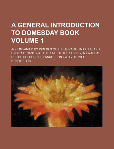 A General Introduction to Domesday Book Volume 1; Accompanied by Indexes of the Tenants in Chief, and Under Tenants, at the Time of the Survey, as Wall as of the Holders of Lands in Two Volumes