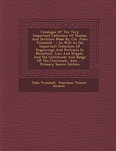 Catalogue Of The Very Important Collection Of Studies And Sketches Made By Col. John Trumbull ...: As Well As His Important Collection Of Engravings And Portraits In Mezzotint, Line And Stipple, And His Certificate And Badge Of The Cincinnati, Also The Unique Washington Pitcher And Punch Bowl ...