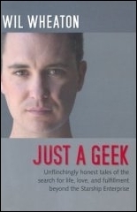 In case I've never mentioned it, since opening CCLaP I've had a growing amount of friends here in Chicago start to loan me older books on a regular basis, simply because they're interested in seeing what I have to say about them; that's how I ended up with Just A Geek, for example, the 2004 personal memoir and "blog-book" by former child actor and now respected writer Wil Wheaton, loaned to me by my friend Jude the other week, while I was over at her place watching the series finale of Battlestar Galactica. (And speaking of which, whoo man what a series finale...but that's a whole other frakking essay for a whole other frakking day.) And indeed, it's highly appropriate that a show like BSG should lead to me reading this book; because for those who don't know, Wheaton is perhaps best-known among the general public for his teenaged role in the seminal '80s science-fiction TV actioner Star Trek: The Next Generation, a show so immersed now in the popular culture that it still follows/haunts him to this day.