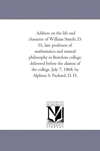 Address on the life and character of William Smyth, D. D., late professor of mathematics and natural philosophy in Bowdoin college; delivered before ... July 7, 1868, by Alpheus S. Packard, D. D.