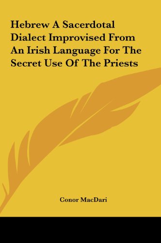 The book titled ""Hebrew A Sacerdotal Dialect Improvised From An Irish Language For The Secret Use Of The Priests"" is written by Conor MacDari. The book is a detailed account of a sacerdotal dialect that was improvised from the Irish language and used secretly by the priests. The book explores the intricate details of the dialect, its origins, and its usage in the context of the priesthood.The author delves into the history of the Irish language and its connection to the Hebrew language. He explains how the sacerdotal dialect was created by the priests to communicate secretly among themselves. The book also sheds light on the role of the priests in ancient societies and their use of secret languages.The book is written in a scholarly style and is aimed at readers who have an interest in linguistics, history, and religion. It is a valuable resource for anyone who wants to learn more about the origins and usage of secret languages in ancient societies. The book is a testament to the author's extensive research and knowledge in the subject matter.THIS 28 PAGE ARTICLE WAS EXTRACTED FROM THE Irish Wisdom Preserved in Bible and Pyramids, by Conor MacDari. To purchase the entire book, please order ISBN 1564597547.This scarce antiquarian book is a facsimile reprint of the old original and may contain some imperfections such as library marks and notations. Because we believe this work is culturally important, we have made it available as part of our commitment for protecting, preserving, and promoting the world's literature in affordable, high quality, modern editions, that are true to their original work.