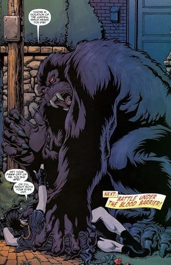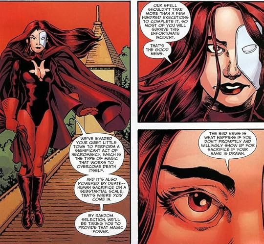 And then there's the trainwreck named Kid Karnevil, and I quote from Comic Vine: "Karnevil has no powers, but is a ruthless and sadistic killer. He is an expert in many kinds of torture." Why? Why is such a throwaway character included in a coalition of mystic villains?! Just because Detective Chimp (note, a genius, talking chimp) is included in Shadowpact?