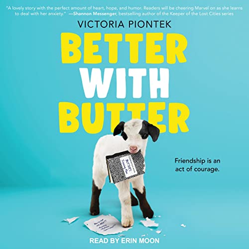 Better with butter is a story with a 12 year old girl that has a disorder that makes her faint, and when she does a presentation she faints and discovers that she needs a pet. When she finds a goat eating trash she takes it home and asks her parents to keep her. When the kids decide what play to put on they choose one with a goat. A few weeks later she sees an unfamiliar car parked on their driveway and realizes that it is the goats owner. Will she make it through the play or will she faint?