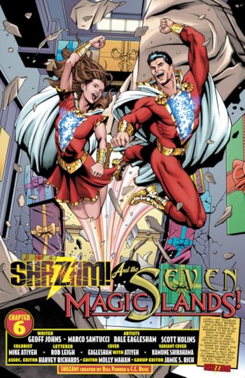 Johns refreshes Shazam in many ways. Billy Batson is now a teenager, and his foster siblings make up the rest of the Shazam family. But the bones of the old-fashioned Fawcett title are still there: the perils are not too grave, the adventures swashbuckle, the action is big and bold. Billy acts from his heart, and to the extent his siblings come into play, they struggle with familiar teen and family issues. The main critique here is that Mary Marvel shouldn't be played for sex appeal, do we really need that from a teenager in a foster family?