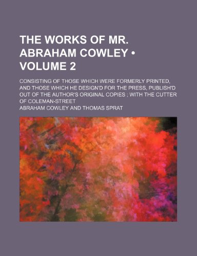 This historic book may have numerous typos and missing text. Purchasers can download a free scanned copy of the original book (without typos) from the publisher. Not indexed. Not illustrated. 1710. ... When Truth and Falshood, Good and Evil, we Without the Senses Aid within our selves would fee j For tis God only who can find All Nature in his Mind. IV. From Words, which are but Pictures of the Thought, (Though we our Thoughts from them perversly drew) To Things, the Mind's right Object, he it brought, Like foolish Birds to painted Grapes we flew 5 He sought and gather'd for our use the True; And when on heaps the chosen Bunches lay, He prefc'd them wisely the Mechanick way, Till all their Juice did in one Vessel join, Ferment into a Nourishment Divine, The thirsty Soul's refreshing Wine. Who to the Life an exact Piece would make, Must not from other's Work a Copy take 5 f No, not from Rubens or Vandike-y Much less content himself to make it like Th' Idæas and the Images which lye In his own Fancy, or his Memory. No, he before his Sight must place The natural and living Face 5 The real Object must command Each Judgment of his Eye, and Motion of his Hand V. From these and all long Errors of the Way, In which our wandring Predecessors went,; : ) O 2 And And like th'old Hebrews many Years did stray, In Deserts but of small Extent, Bacon, like Mo/es, led us forth at last, The barren Wilderness he past, Did on the very Border stand Of the bless'd promis'd Land, And from the Mountains Top of his exalted Wit, Saw it himself, and shew'd us it. But Life did never to one Man allow Time to discover Worlds, and conquer too j Nor can so short a Line sufficient be To fathom the vast Depths of Nature's The Work he did we ought t'admire, And were unjust if we should more require From his few Years, divided 'twixt th' Excess Of low Affliction, and high Happiness. For who on things remote can fix his Sight, That's always in a Triumph, or a Fight VI. From you,...