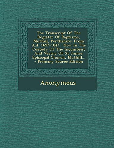 The Transcript Of The Register Of Baptisms, Muthill, Perthshire: From A.d. 1697-1847 : Now In The Custody Of The Incumbent And Vestry Of St James' Episcopal Church, Muthill...