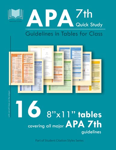 APA 7th Quick Study Guidelines in Tables for Class: 16 8’’x11’’ Tables Covering All Major APA 7 Guidelines